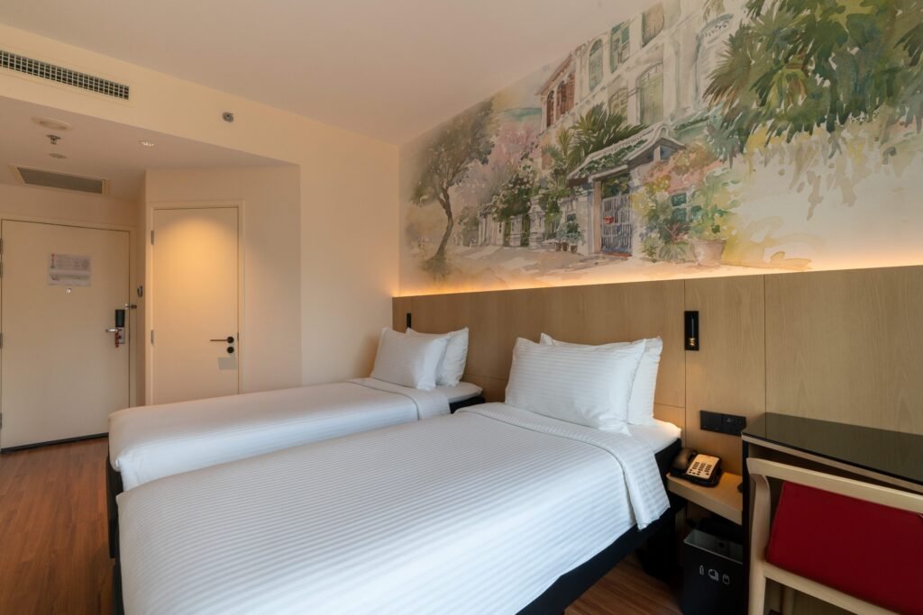 تمتاز هذه الغرفة الديلوكس في طابق علوي بتصميمها العصري والمريح، ومجهزة بسريرين مفردين من نوع Sweet Bed by ibis لضمان راحة مثالية للضيوف. تحتوي الغرفة على تلفزيون ذكي بقياس 43 بوصة مع ميزة مشاركة الشاشة، بالإضافة إلى مجموعة من وسائل الراحة الحديثة.