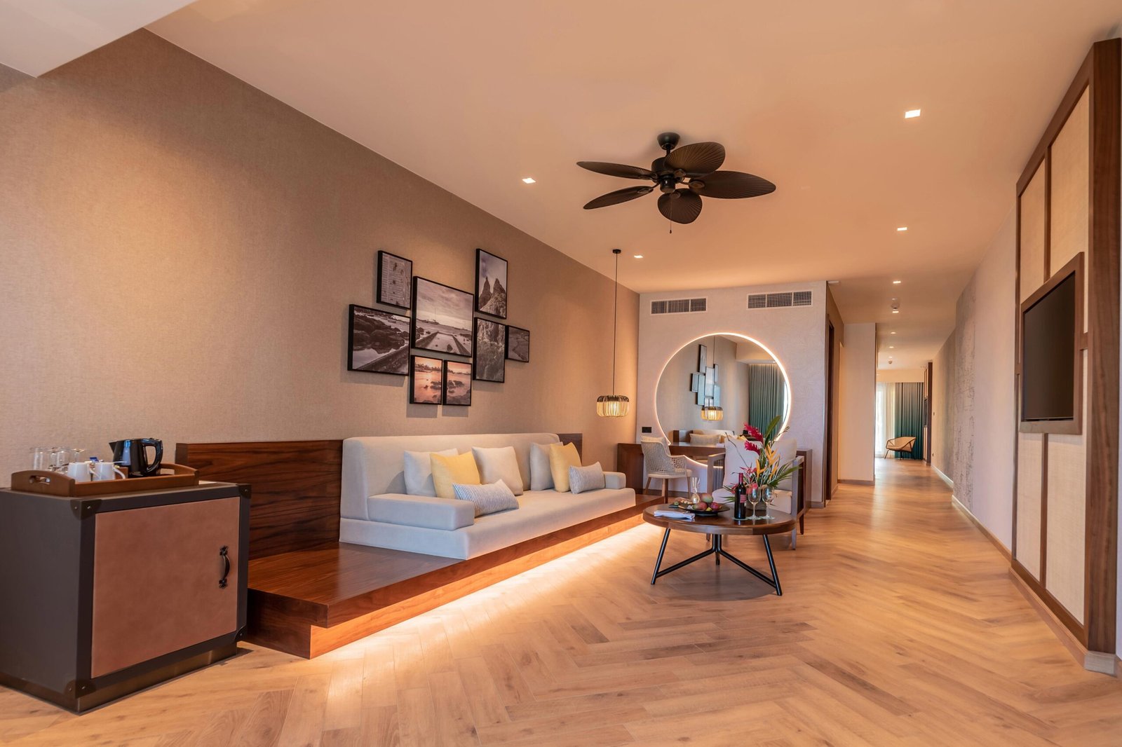 جناح جونيور فاخر يضم سرير كينغ واحد، مع ثلاجة صغيرة لتوفير أقصى درجات الراحة. يمتد على مساحة 60 مترًا مربعًا (646 قدمًا مربعًا)، ويوفر خدمة الواي فاي المجانية، ليمنح النزلاء تجربة إقامة مريحة وعصرية.