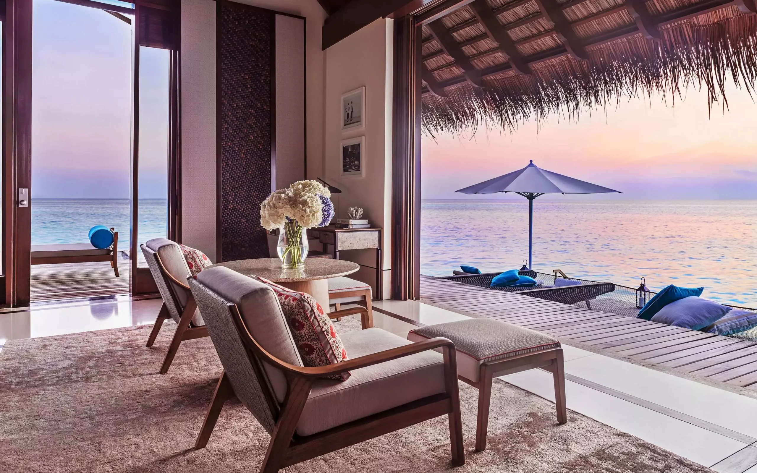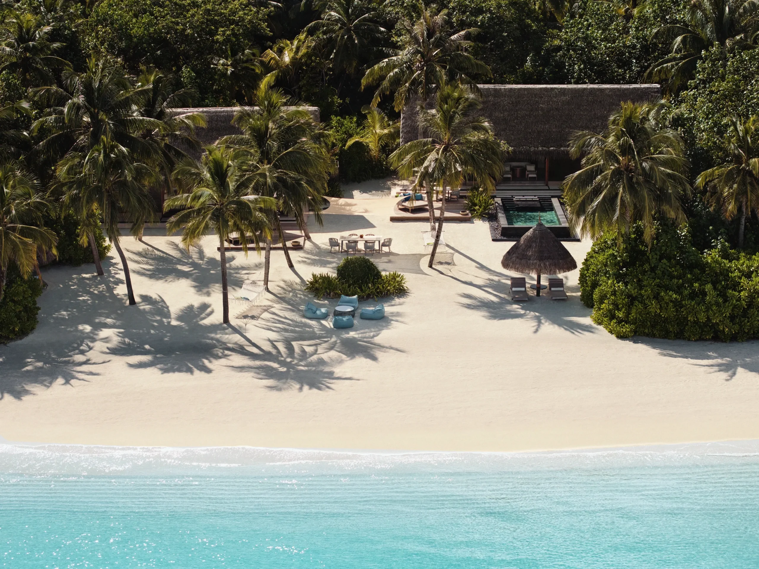 تجمع هذه الإقامة الاستثنائية بين فيلتين مسقوفتين بالقش على الطراز المالديفي الأصيل، حيث المساحات الرحبة للمعيشة وتناول الطعام، والشرفة المطلة على أفق المحيط الهندي المتلألئ بلا نهاية. تضم إحدى الفيلتين سريرًا بحجم كينغ، فيما تحتضن الأخرى سريرين بحجم كوين، مما يجعلها مثالية للعائلات أو المجموعات.