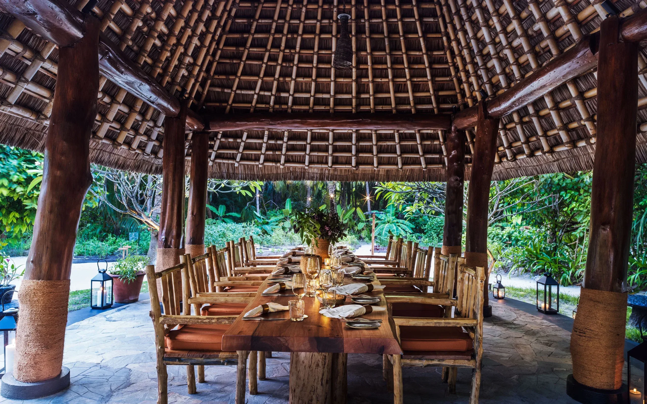 مطعم في الهواء الطلق يحتفي بالمكونات الطازجة المزروعة في الحديقة. تجربة عشاء تحت الأشجار والنجوم، في أجواء رومانسية محاطة بحدائق مخفية، حيث يُستمد جزء كبير من قائمة الطعام من حديقة الشيف والمحيط المحيط.