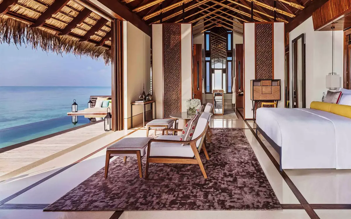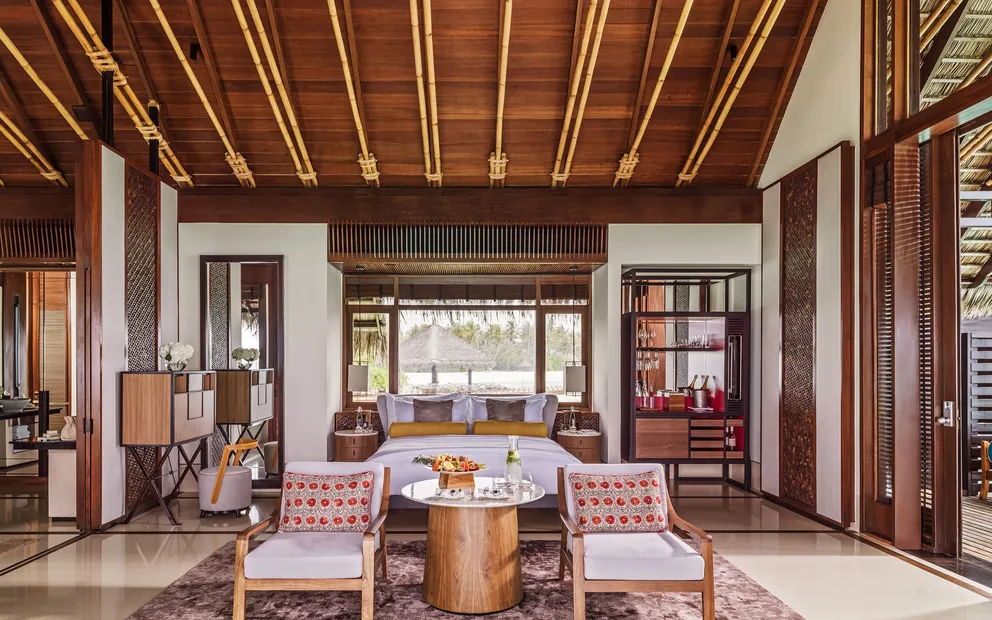 تقع هذه الإقامة الاستثنائية وسط أجواء طبيعية خلابة، وتضم غرفتين واسعتين، إحداهما بسرير كينغ والأخرى بسريرين كوين، إضافةً إلى مساحات جلوس رحبة وحمّام أنيق مزود بحوض استحمام مزدوج مصمم للمشاركة. بُنيت الفيلا على الطراز المالديفي التقليدي مع لمسات فنية راقية تعكس جمال العمارة المحلية.