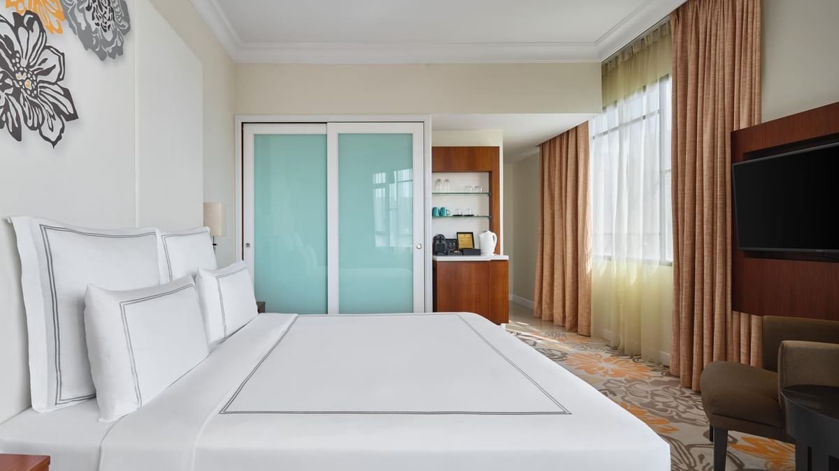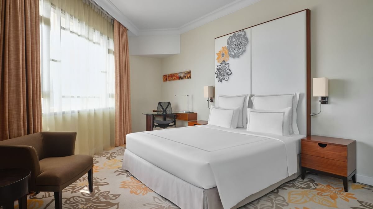توفر الغرف المريحة والأجنحة الواسعة إطلالات خلابة على أفق المدينة، ومجهزة بوسائل راحة مدروسة تمنحك أسلوب إقامة مريحًا بلا تعقيد.