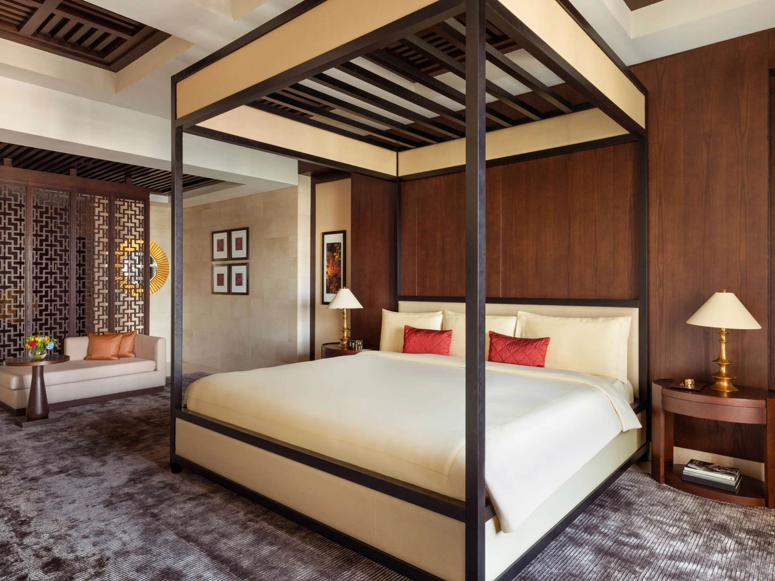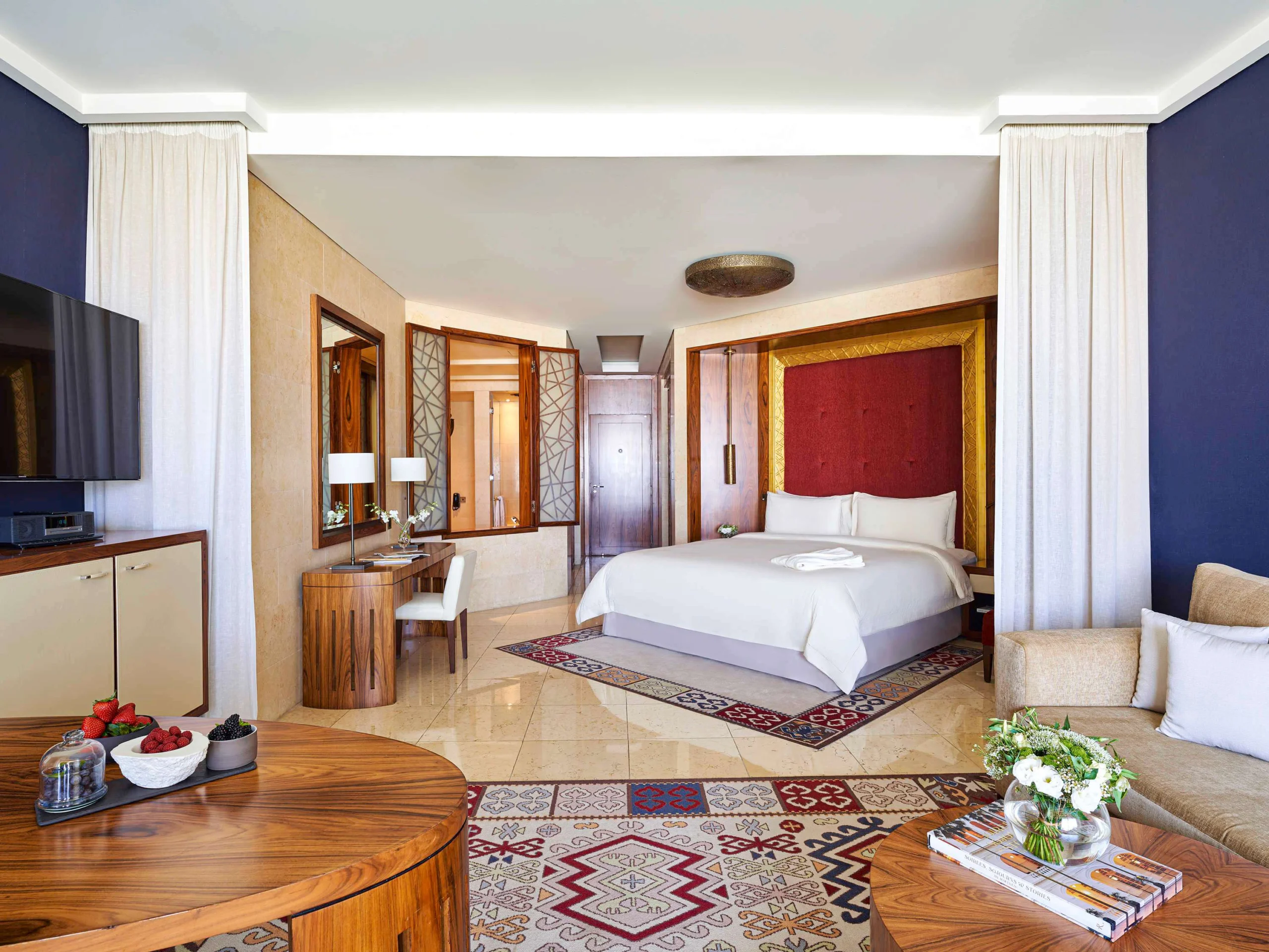 تصاميم داخلية فاخرة وأقمشة راقية وروائع فنية أنيقة تجتمع لتشكّل ملاذًا سكنيًا بامتياز. كل جناح هو منزل متكامل يعكس الفخامة والرقي، وتجربة إقامة لا تُنسى لا تُضاهى بأي أخرى.