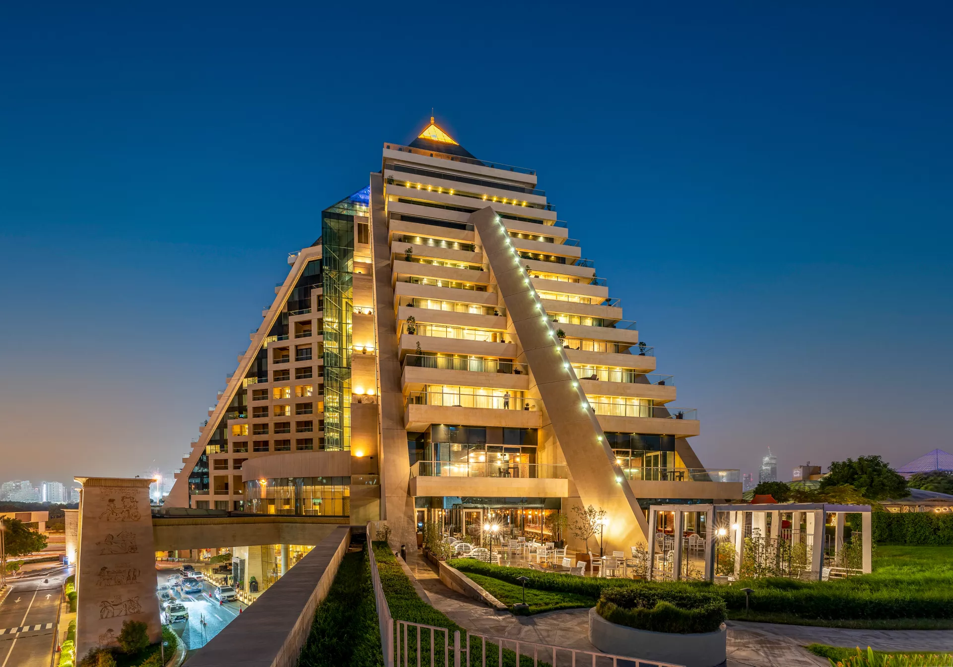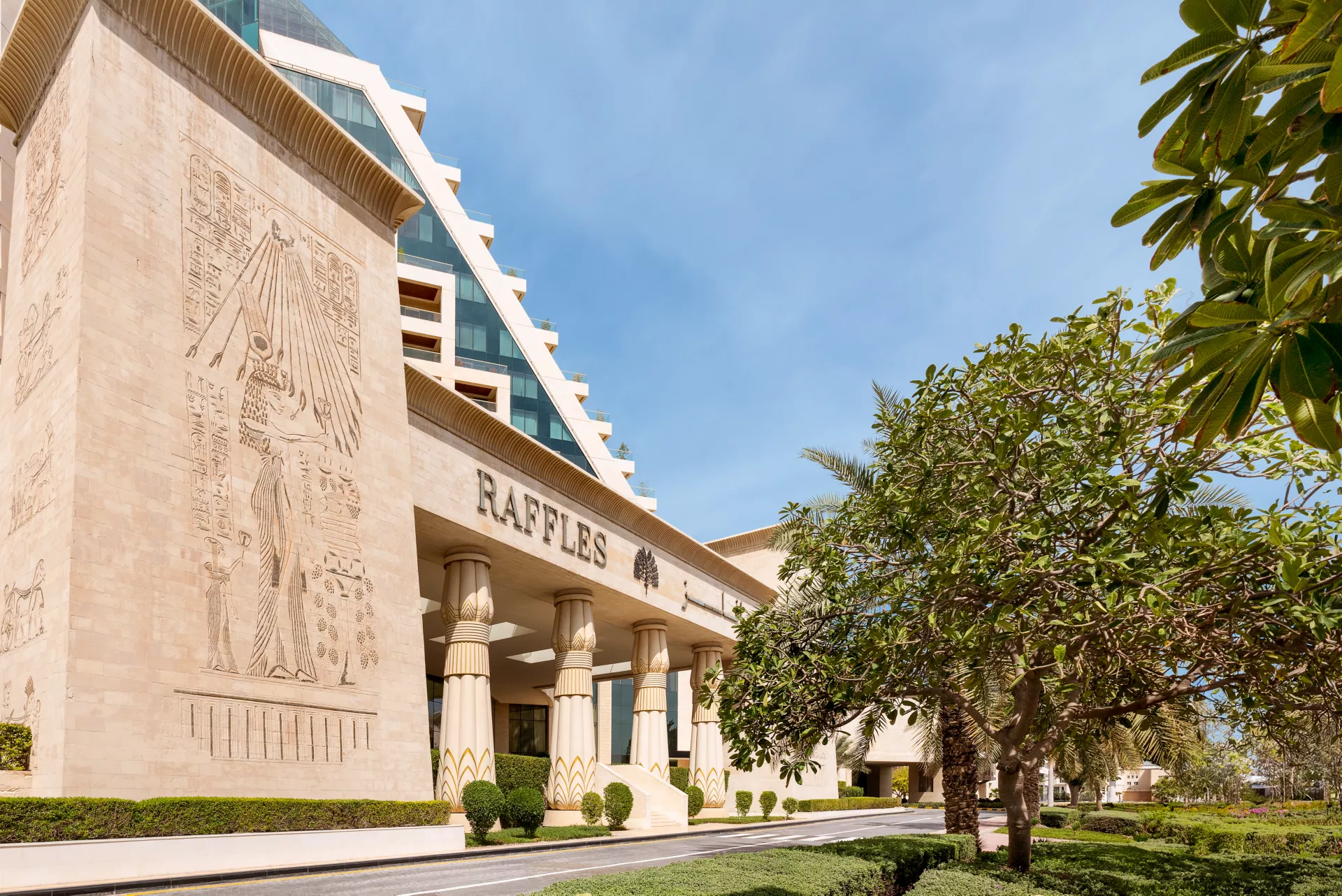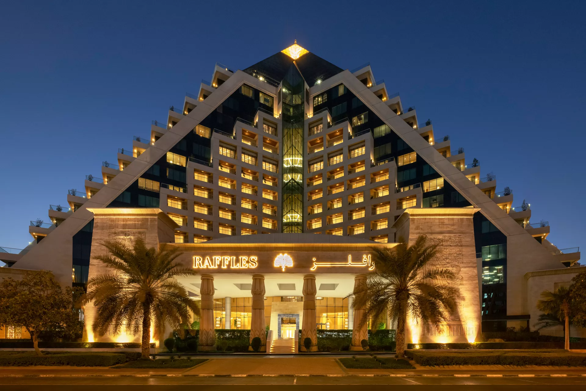 تم افتتاح فندق رافلز دبي عام 2007، وجاء تصميمه المعماري مستلهماً من أهرامات مصر العريقة، ليكون اليوم جسراً يجمع بين التراث القديم والفخامة العصرية. وقد أصبح الفندق معلماً بارزاً وأيقونة معروفة في قلب المدينة.
