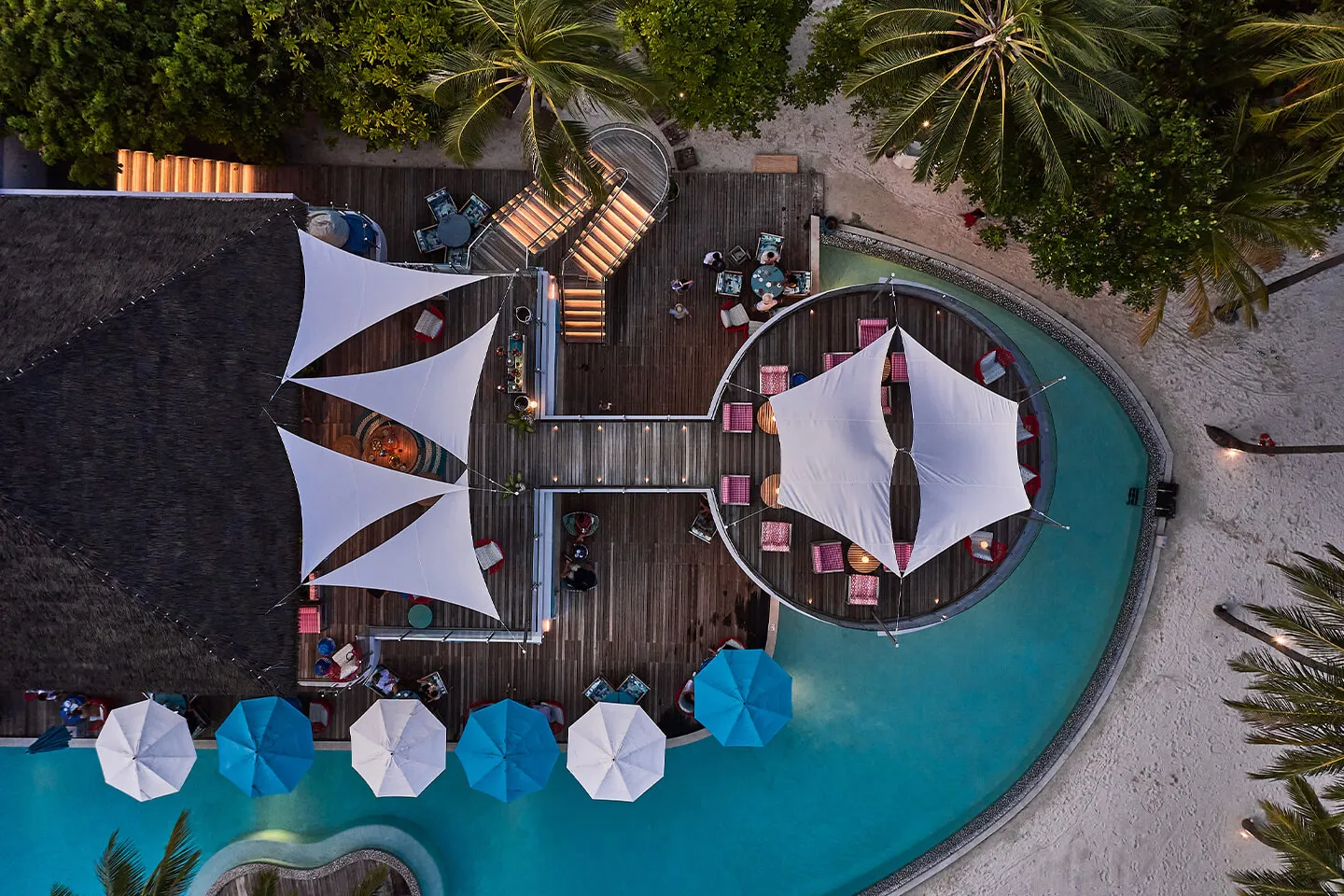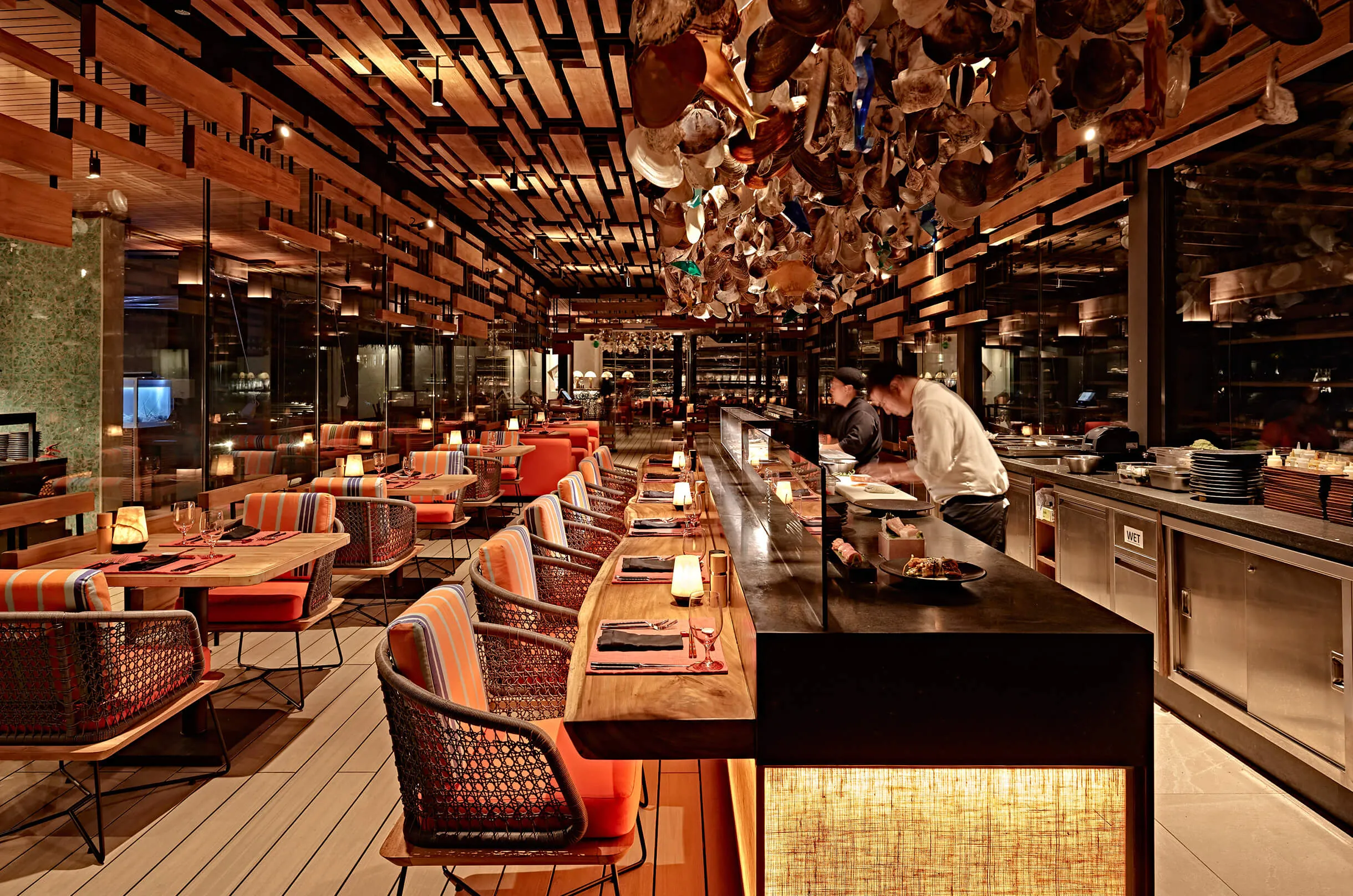 المطعم الحائز على جوائز والمتخصص في المأكولات اليابانية الكلاسيكية والحديثة. يقع على ركائز فوق المحيط ويمكن الوصول إليه عبر ممر خشبي. يتميز بمنطقة سوشي وبار مقبلات، ويوفر أجواءً رومانسية مثالية للمناسبات الخاصة. من بين أطباقه المميزة “سلمون يوان ياكي”، سلمون مشوي مع بوريه دايكون، فواكه حمضية، وجبنة بارميزان.