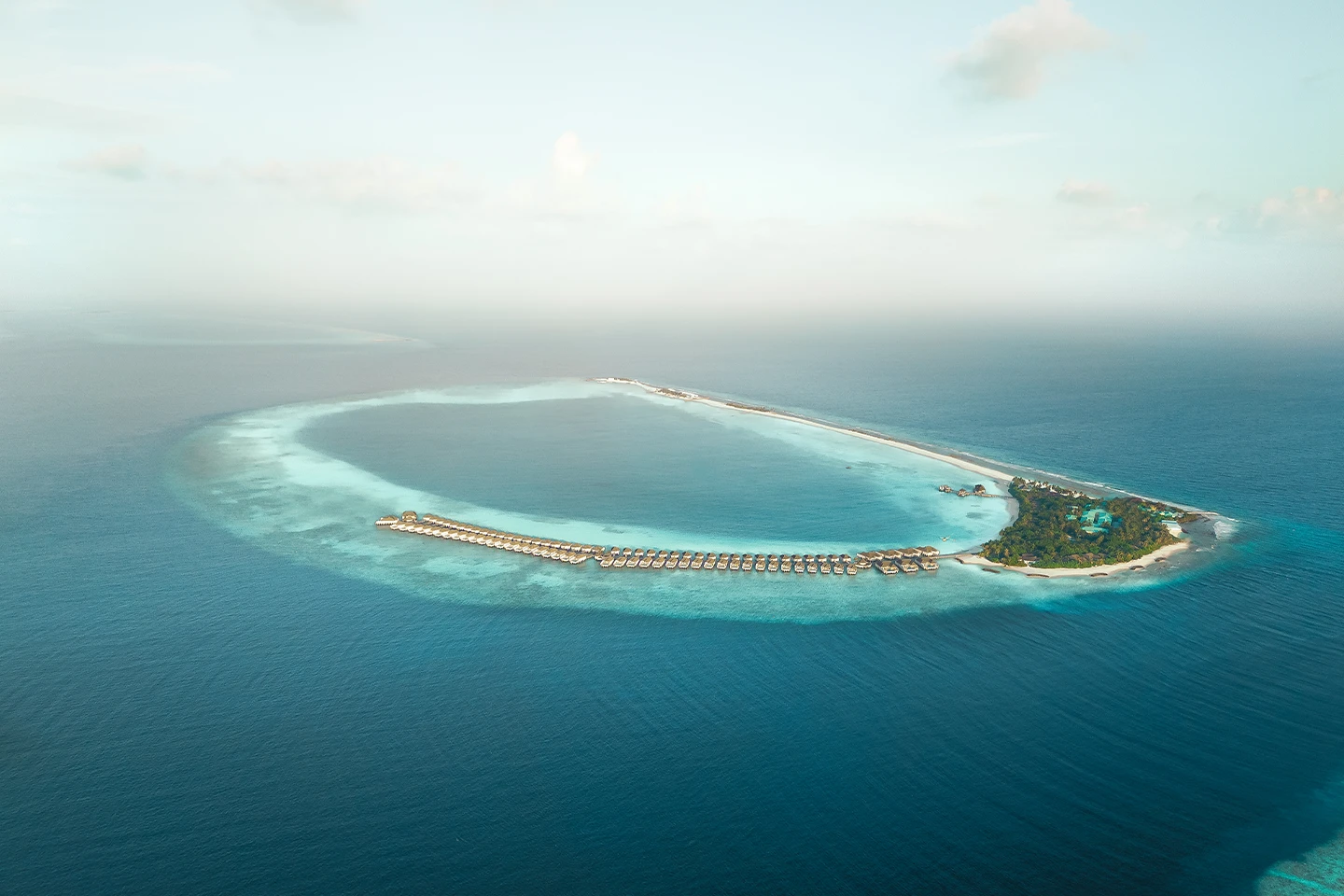 العيش بجانب البحر مع إطلالات يومية على درجاته الزرقاء اللامتناهية له أثر عميق على الروح. جميع الفلل الـ125 في المنتجع تقع مباشرة على الشاطئ أو البحيرة أو معلقة فوق الماء، منها 79 فيلا تضم مسابح خاصة.