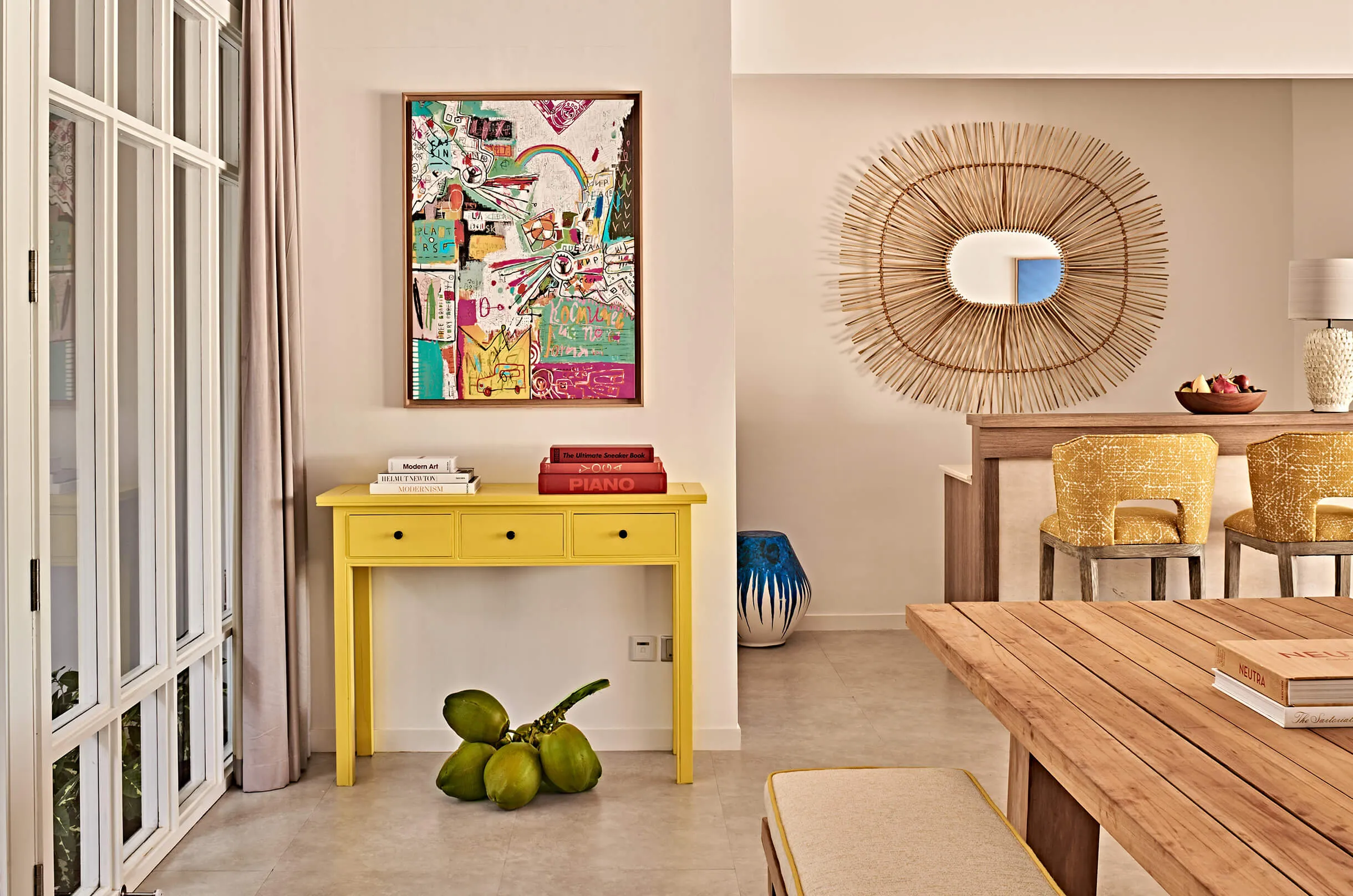 هناك الكثير لتراه، لتفعله… ولتصوره أيضًا. ستلتقط الصور للفاصل الضيق بين المسبح والمحيط، للسماء وغروب الشمس الرائع، ولألوان الديكور المذهلة التي أضافت لمسات حيوية في جميع أنحاء الفيلا البالغة مساحتها 180 مترًا مربعًا. نهارًا وليلًا، ستستمتع بعطلتك البحرية بمفاجآت جديدة.