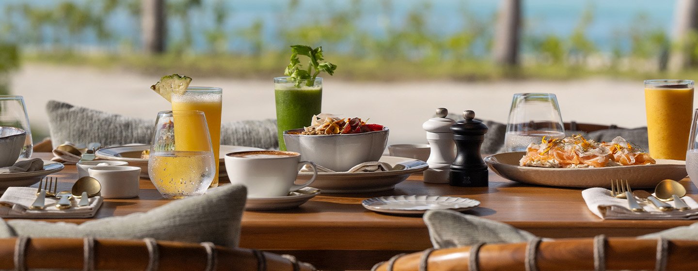 تجربة طعام طوال اليوم مستوحاة من نكهات آسيا، في أجواء هادئة على الشاطئ بلمسات تصميمية بان آسيوية. قائمة الطعام تتضمن أطباقًا من كود الأسود، أضلاع الغنم، ديم سوم، وسلطات خفيفة.