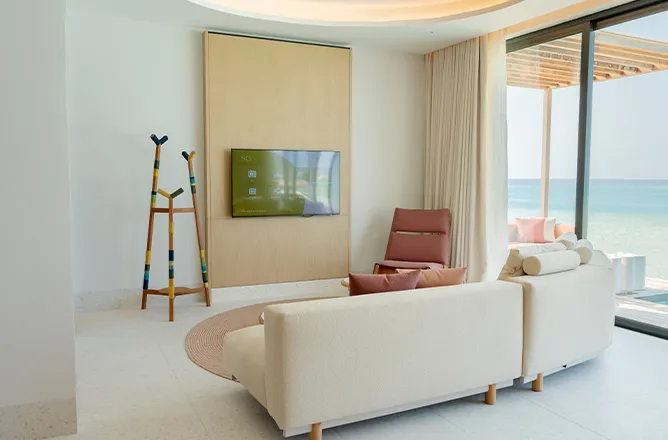 بتصميم يعكس الرفاهية المعاصرة ولمسات فنية متميزة، يقدّم المنتجع 80 فيلا شاطئية وفوق الماء، مصمّمة للعيش المفتوح بانسيابية مع الطبيعة، وتطلّ على مناظر بحرية آسرة.