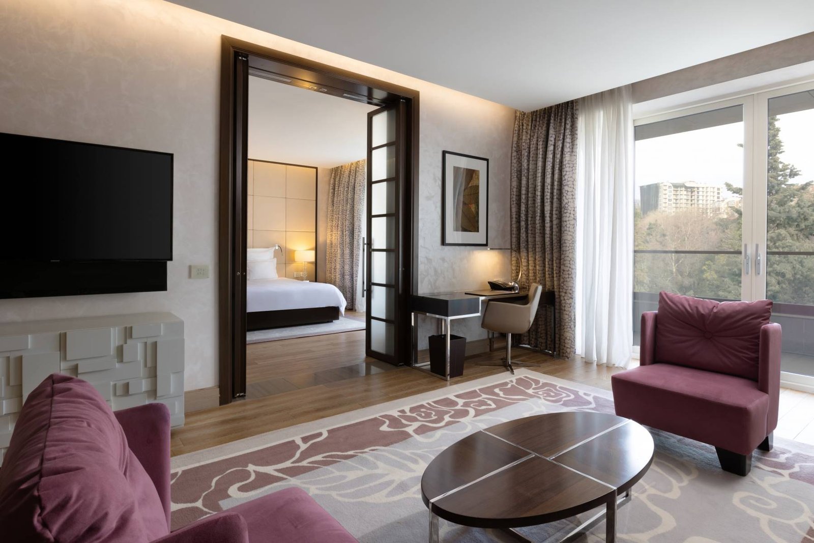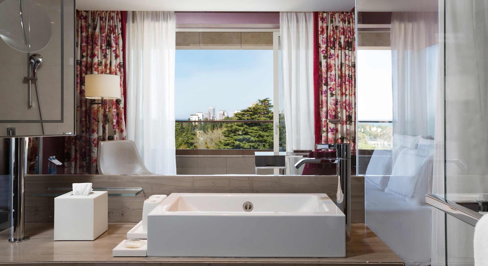 تم تصميم جناحنا الرئاسي الفاخر ليجعل لحظات حياتك الخاصة أكثر تميزًا وتخلد في الذاكرة. يضم الجناح غرفة معيشة واسعة وغرفتي نوم توفران إطلالة بانورامية رائعة على البحر الأسود ومدينة سوتشي الجميلة والحديقة المزهرة، ليمنحك تجربة إقامة تجمع بين الفخامة والهدوء في أجواء لا تُضاهى.