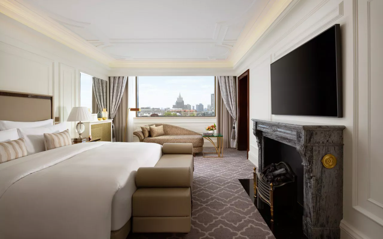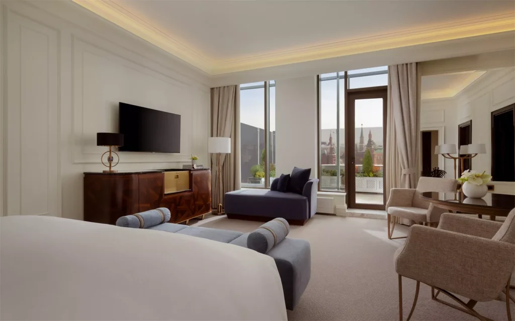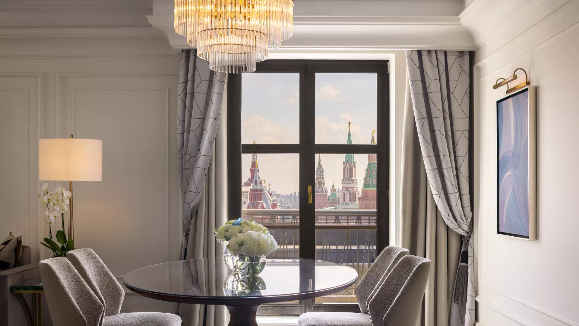 يُعد جناح موسكو الجناح الوحيد من نوعه في الفندق، ويتميز بإطلالاتٍ مذهلة على معالم العاصمة الروسية. بفضل موقعه الزاوي في الطابق العاشر والنوافذ البانورامية التي تُغمرها أشعة الشمس، يمكن للضيوف الاستمتاع بمشاهد خلابة للكرملين، في تجربة تجمع بين الفخامة والعراقة التاريخية. يتألق التصميم الداخلي بلمسات أنيقة تشمل مدافئ ديكورية في غرفة المعيشة الواسعة وغرفة النوم، إضافةً إلى طاولات من الملكيت ولوحات فنية بإطارات مذهبة تعكس الذوق الرفيع.