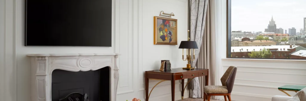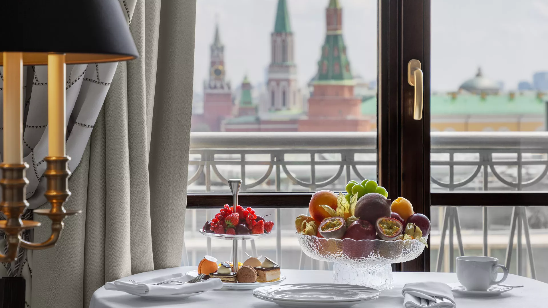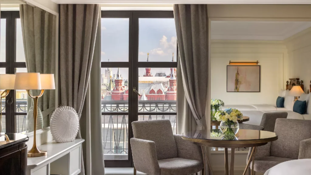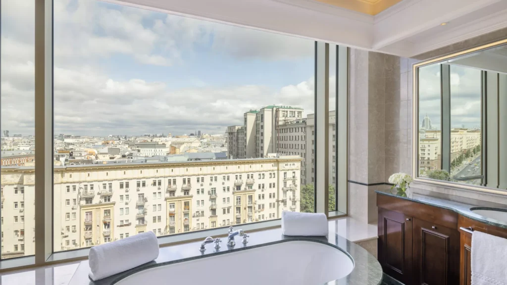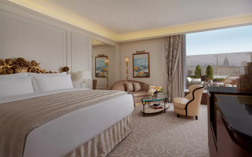 يُعد جناح موسكو الجناح الوحيد من نوعه في الفندق، ويتميز بإطلالاتٍ مذهلة على معالم العاصمة الروسية. بفضل موقعه الزاوي في الطابق العاشر والنوافذ البانورامية التي تُغمرها أشعة الشمس، يمكن للضيوف الاستمتاع بمشاهد خلابة للكرملين، في تجربة تجمع بين الفخامة والعراقة التاريخية. يتألق التصميم الداخلي بلمسات أنيقة تشمل مدافئ ديكورية في غرفة المعيشة الواسعة وغرفة النوم، إضافةً إلى طاولات من الملكيت ولوحات فنية بإطارات مذهبة تعكس الذوق الرفيع.