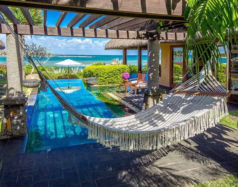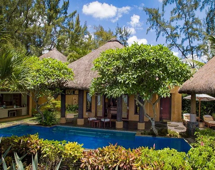 تم تصميم هذه الفيلا المهيبة بعناية باستخدام الضوء الطبيعي والمواد المستوحاة من الطبيعة. تمتاز بأسقف عالية مغطاة بالقش التقليدي، وأقمشة يدوية الصنع، وأثاث خشبي أنيق يضفي لمسة أصيلة على الأجواء. توفر مساحات رحبة للرفاهية، سواء في غرفة النوم الرئيسية المزودة بسرير كينغ، بمساحة داخلية تبلغ 85 مترًا مربعًا مع إطلالات خلابة على المحيط والجبال، أو في الحمام الرخامي الغائر المطل على فناء خاص، أو في غرفة المعيشة المستقلة المريحة. كما تضم جناحًا مخصصًا لتناول الطعام في الهواء الطلق، ومسبحًا خاصًا، وتراسًا مجهزًا بكراسي استرخاء. والفيلا مزينة بقطع فنية محلية تمنح النزلاء تجربة أصيلة تجمع بين الفخامة والروح الموريشيوسية.