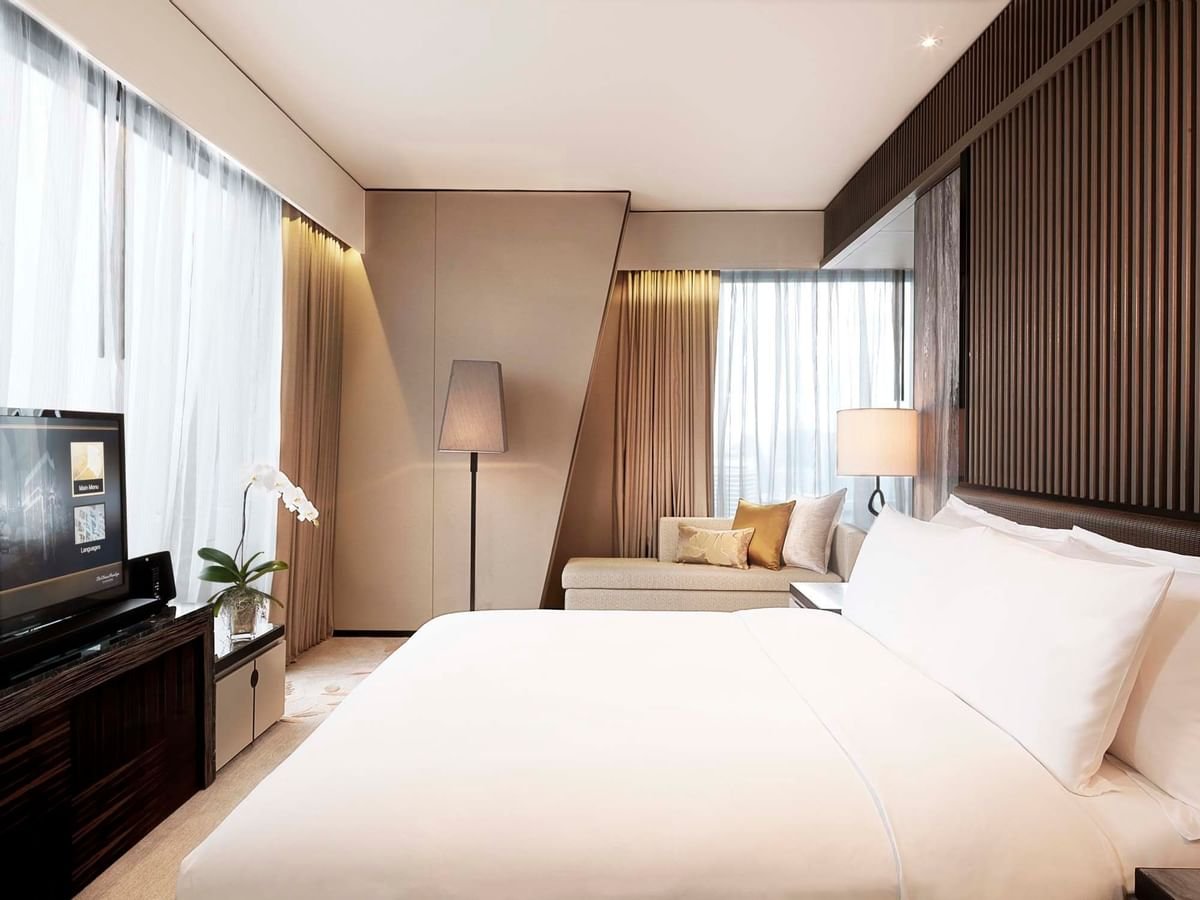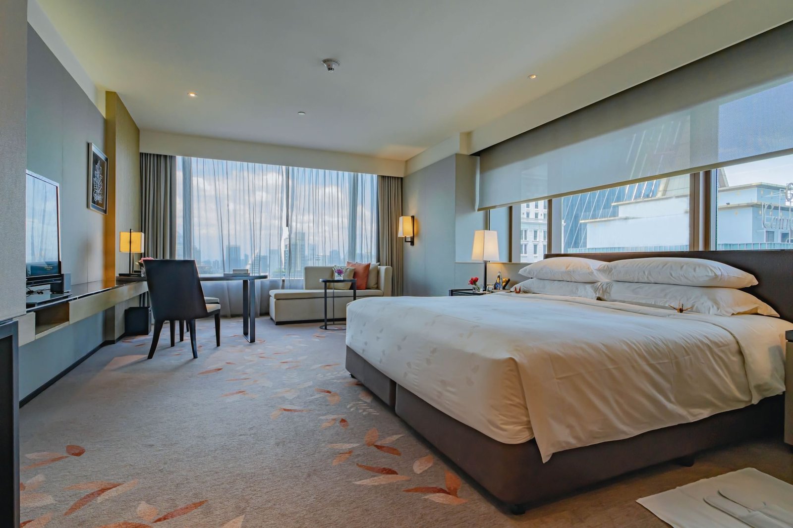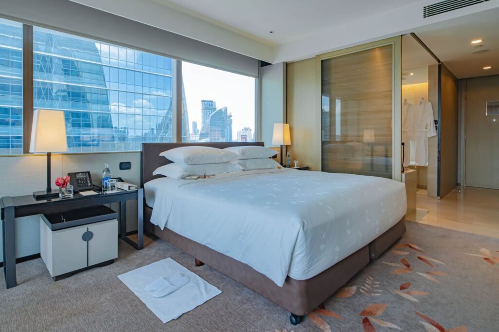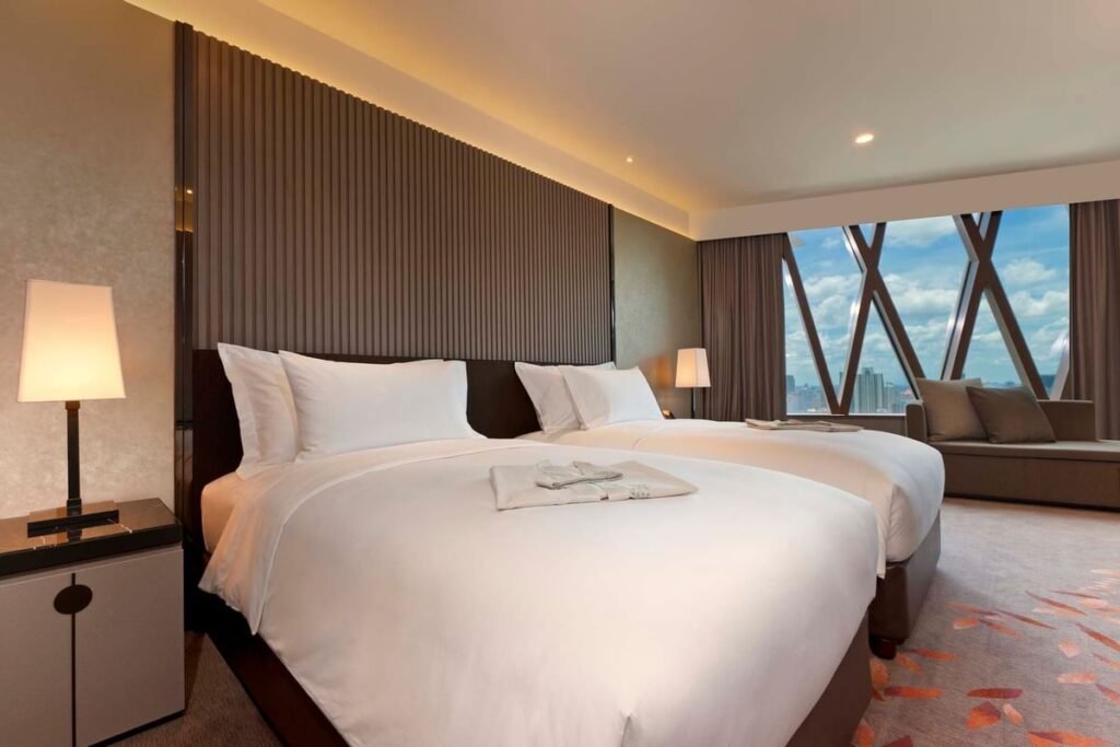 تضم جميع الغرف والأجنحة الـ 240 إطلالات بانورامية خلابة على أفق المدينة عبر نوافذ زجاجية ثلاثية الطبقات عازلة للحرارة والضوضاء، مما يضمن للضيوف أجواء هادئة ومثالية للاسترخاء.