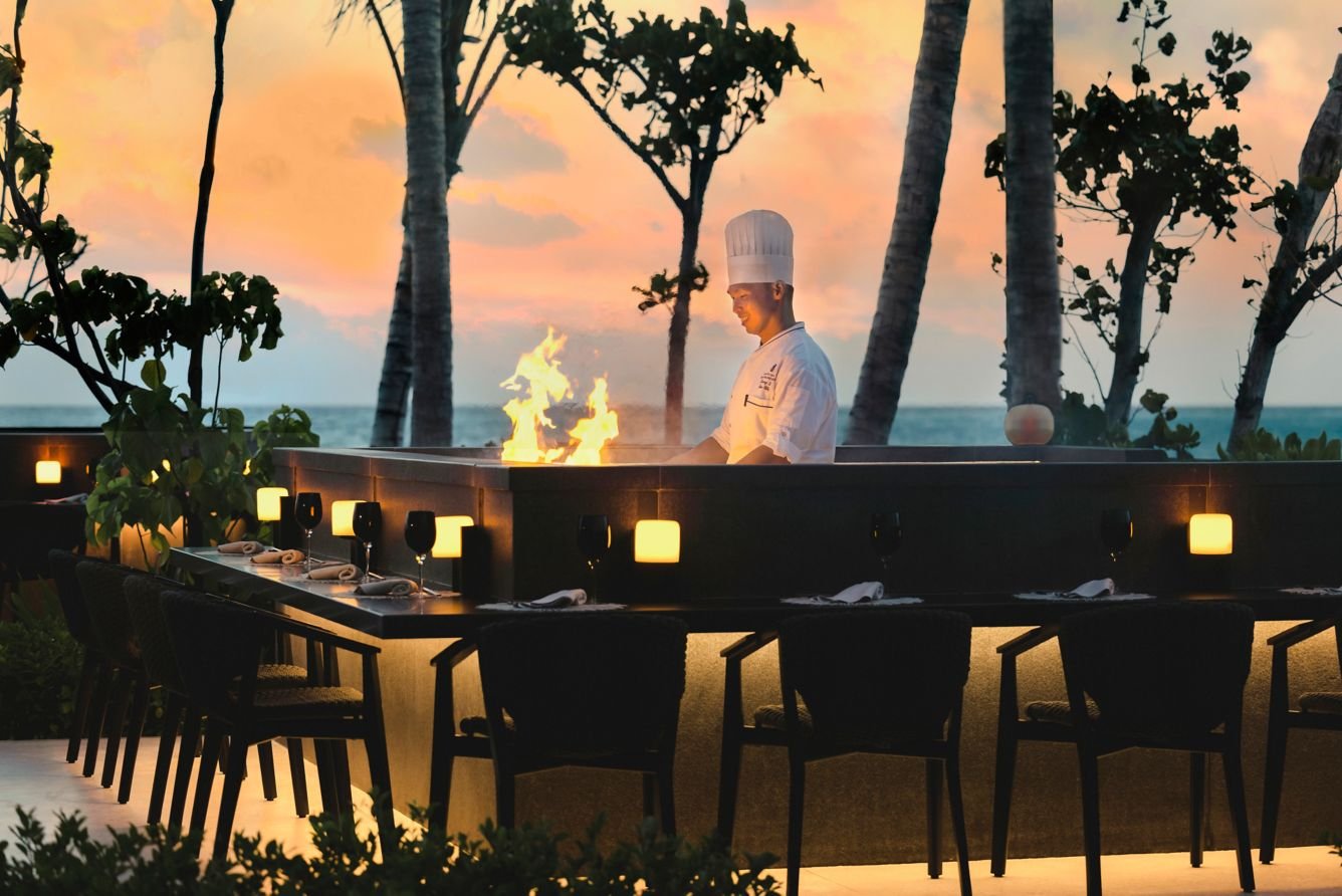 من لحظة وصول الضيوف واستقبالهم بصوت صدفة “سانغو” المستوحاة من التقاليد القديمة لجزر المالديف، مرورًا بخدمة “آريس ميها” الأسطورية -كبير الخدم الشخصي- إلى الاحتفال بغروب الشمس عبر عرض أنيق لطبول “بودو بيرو” الذي يُكرّم أقدم تقاليد جزر المالديف، يليه طقس ناري يرمز إلى الانتقال من النهار إلى المساء، يدعو المنتجع الضيوف إلى تبني نمط الحياة على الجزيرة. يضم هذا المنتجع الفاخر سبعة مطاعم موزعة بين جزيرة الطهي، شاطئ الغروب الكبير، وقرية مارينا فاري، حيث يتم تقديم تجارب طهي مُخصصة لجميع الأذواق.