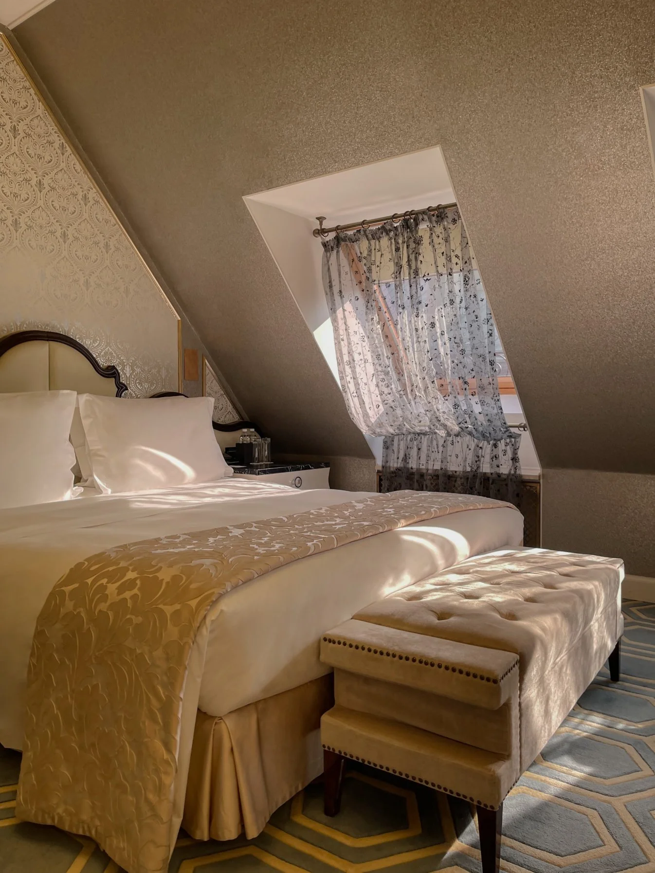 استمتع بأجواء الفخامة والرفاهية في جناح السطح الواقع في الطابق الثامن من الفندق، حيث يلتقي السحر الكلاسيكي بالأناقة العصرية في تصميم فريد يضمن تجربة إقامة لا تُنسى. يتميز الجناح بمساحته الواسعة وسقفه المائل المميز الذي يضفي لمسة من الرحابة والدفء، بينما تخلق التفاصيل المعمارية الأصيلة أجواءً مفعمة بالتميز والرقي.