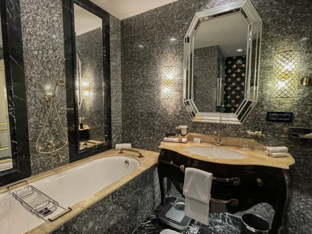 يُعد الجناح الملكي في فندق سانت ريجيس رمزًا للترف والرقي، حيث تُبرز أسقفه العالية التي تصل إلى خمسة أمتار جمال التصميم المعماري وأناقة الغرفة، مما يخلق أجواءً مبهرة ومهيبة. يتكون الجناح من غرفة معيشة واسعة مع منطقة لتناول الطعام، غرفة نوم، ركن للجلوس ومساحة عمل عملية، وقد تم تصميم كل تفصيلة فيه بعناية فائقة لتلبية أعلى معايير الفخامة.